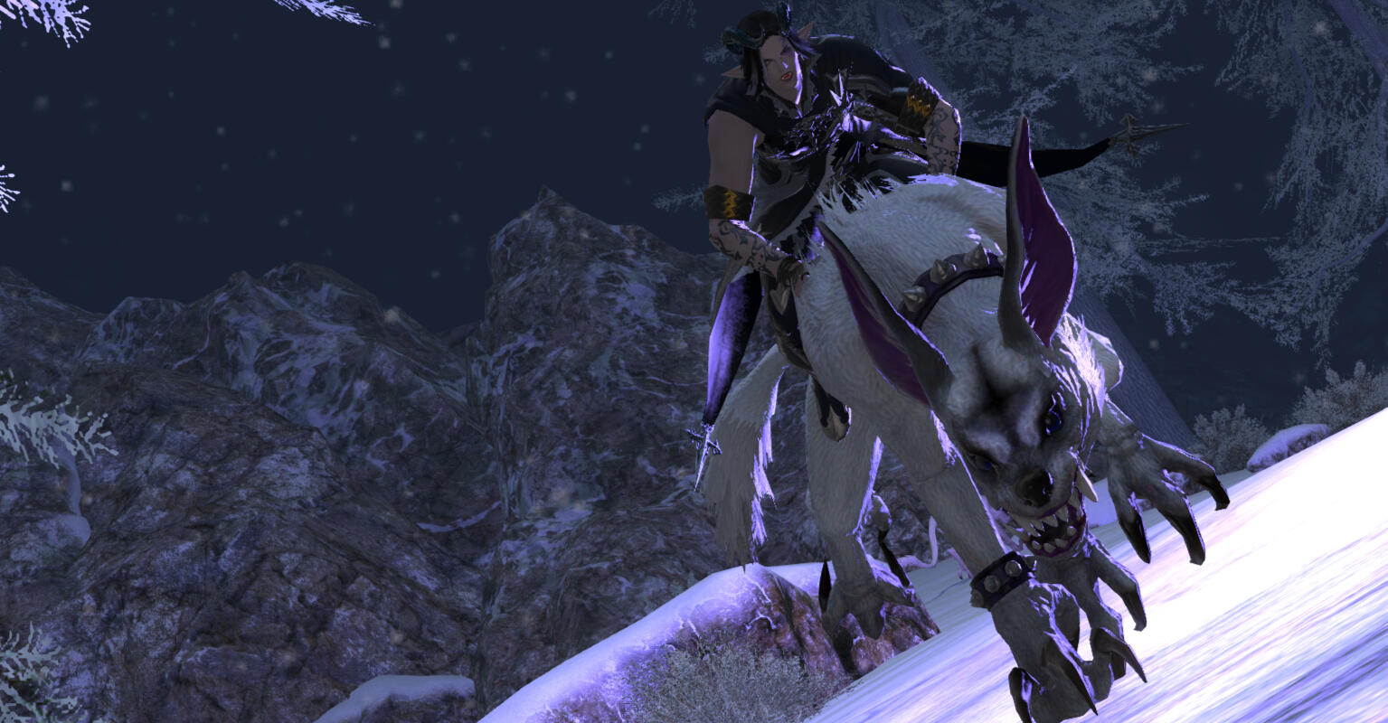 Elezen, Duskwight (void corrupted) ; Familiar | ⚧️ Transgender Male (he/him) | 32nd Sun of the 6th Umbral Moon | Shiva | Winter Wolves (Coerthas/Dravania), Pack Leader; Order of the Twin Adder (former) |